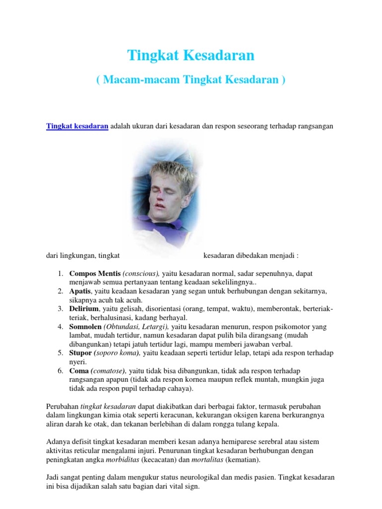 Macam Macam Tingkat Kesadaran No Nama Penjelasan Tanda Tanda Pdf